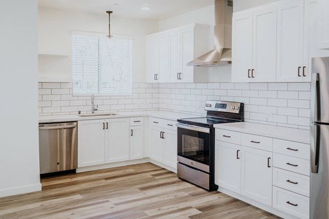 At Park West at Stockdale River Ranch, the apartments are designed with modern living in mind, boasting 9-foot ceilings that create an airy and spacious environment. Simulated wood plank flooring brings a touch of understated elegance to the space, while the practicality is elevated through the inclusion of full-size front load washer and electric dryer in each unit. The kitchens shine with energy-efficient stainless steel appliances, including a refrigerator, dishwasher, and range, perfect for both the culinary enthusiast and the on-the-go diner.