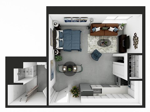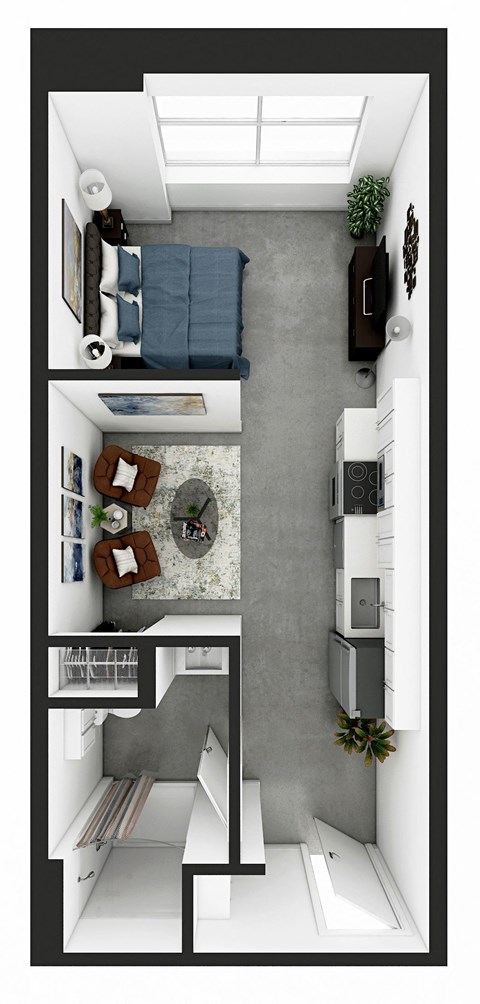 The following floorplans are available: studio apartments from $909 and 1-bedroom apartments from $1,196.