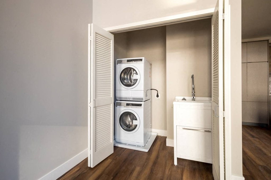 hardwood flooring, in-unit laundry, and three designer finish packages to