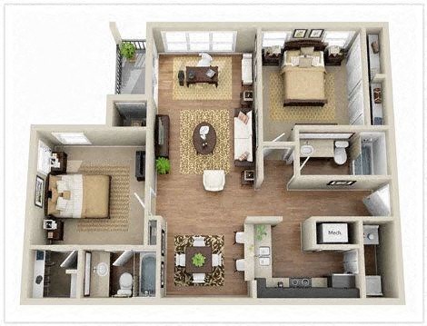 The following floorplans are available: 1-bedroom apartments from $1,200, 2-bedrooms apartments from $1,618 and 3-bedrooms apartments from $2,265.